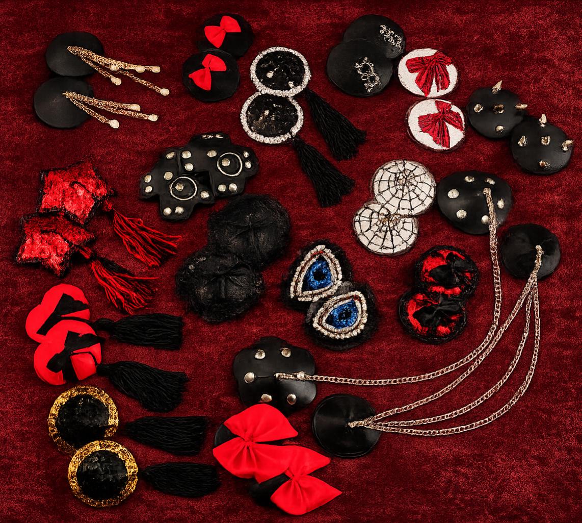Verleih deinem Look das gewisse Extra – mit diesen einzigartigen Nippel-Stickern (Pasties), die garantiert alle Blicke auf sich ziehen. Ob im Club, auf der nächsten Party oder bei einem aufregenden Date: Diese vielfältige Kollektion kombiniert verspielte Eleganz mit einem Hauch von provokanter Raffinesse. Von funkelnden Designs mit Glitzer und Strass über elegante Schleifen bis hin zu auffälligen Ketten-Details – hier findest du für jede Stimmung und jedes Outfit das perfekte Accessoire. Highlights: Egal, ob du subtil verführen oder ein echtes Statement setzen willst – diese Pasties geben dir die Freiheit, deinen Stil selbstbewusst auszuleben. Mach dein Outfit unvergesslich!