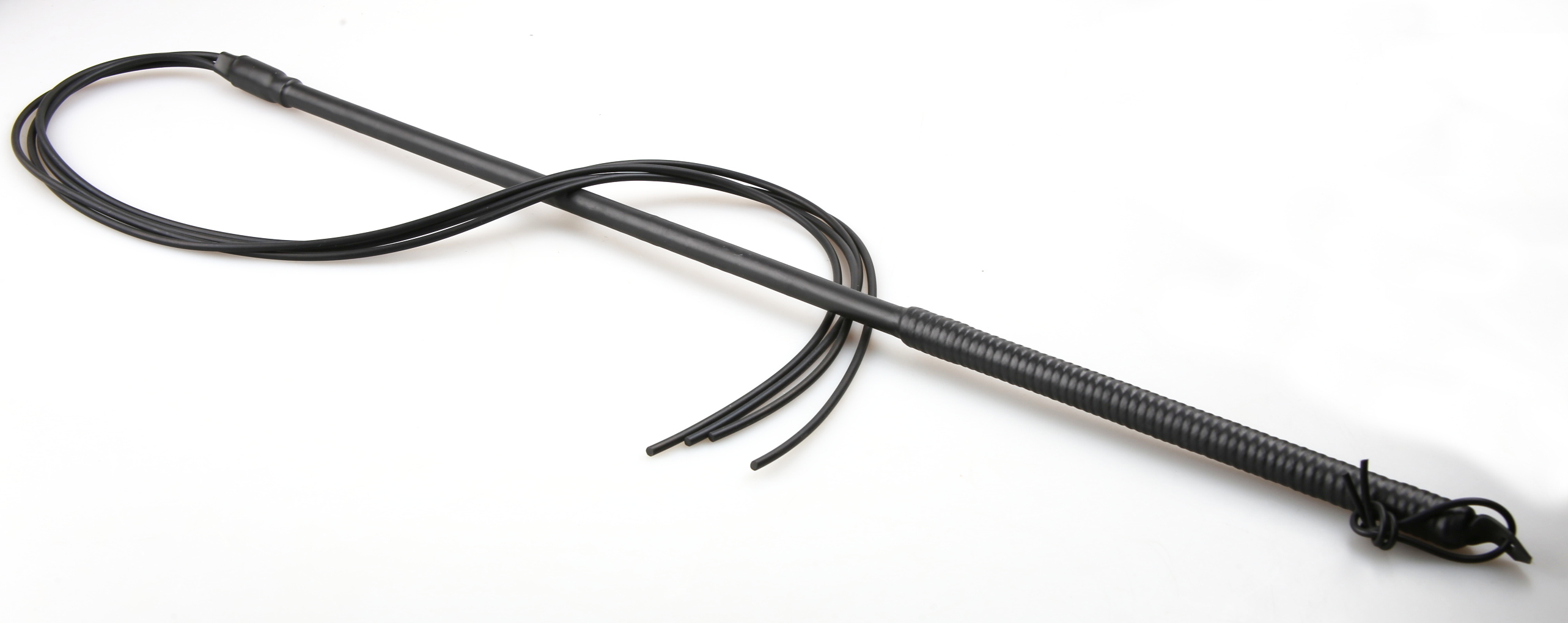 Der schlanke, präzise Griff liegt sicher in der Hand; daran folgen vier identische Stränge von jeweils ca. 60 cm Länge, die zusammen mit dem Griff eine Gesamtlänge von über einem Meter ergeben.