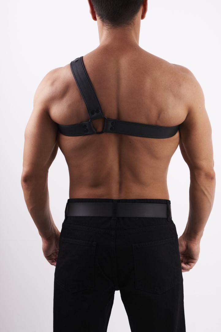 Schlinge die weichen 4 cm breiten Ledergürtel mit abgerundeten Kanten um Deine Brust und trage das Geschirr zu jedem möglichen Anlass.