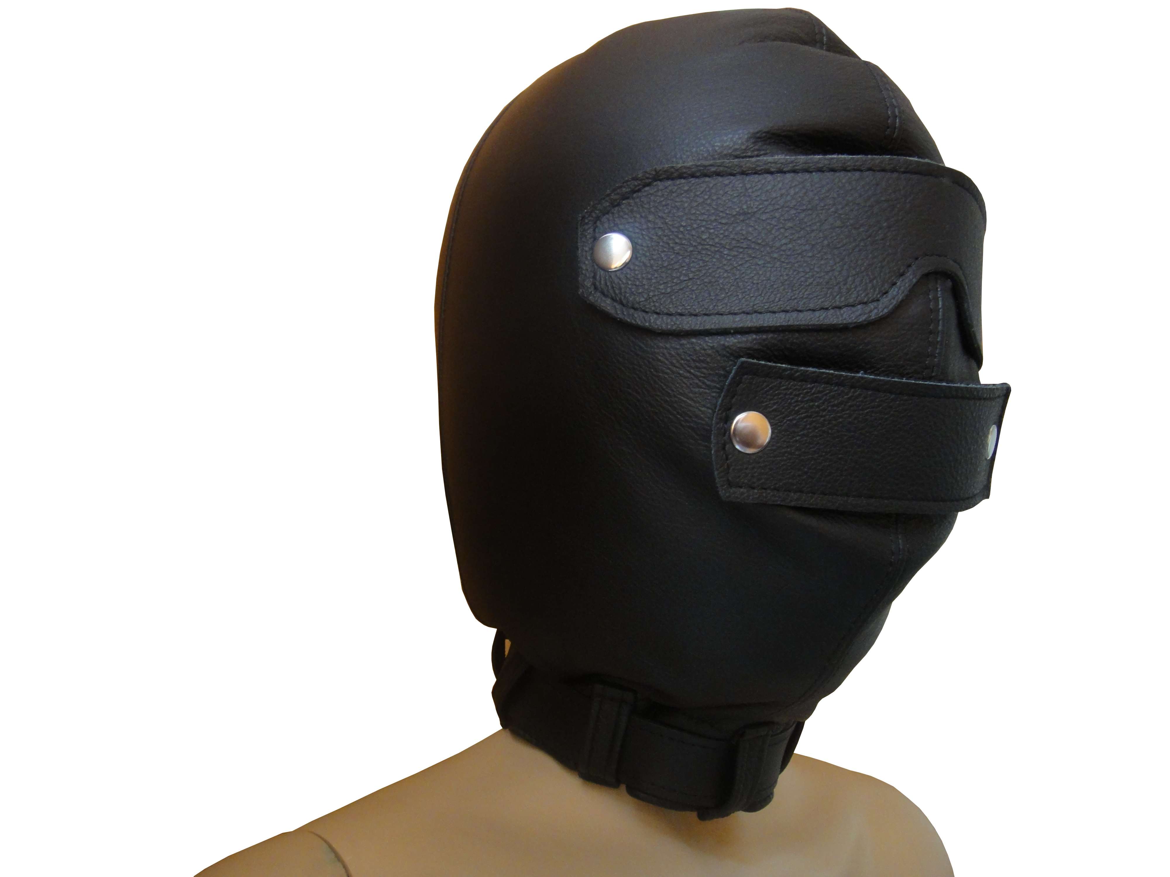 Die Augen und der Mund sind mit abnehmbaren Lederpads ausgestattet.
