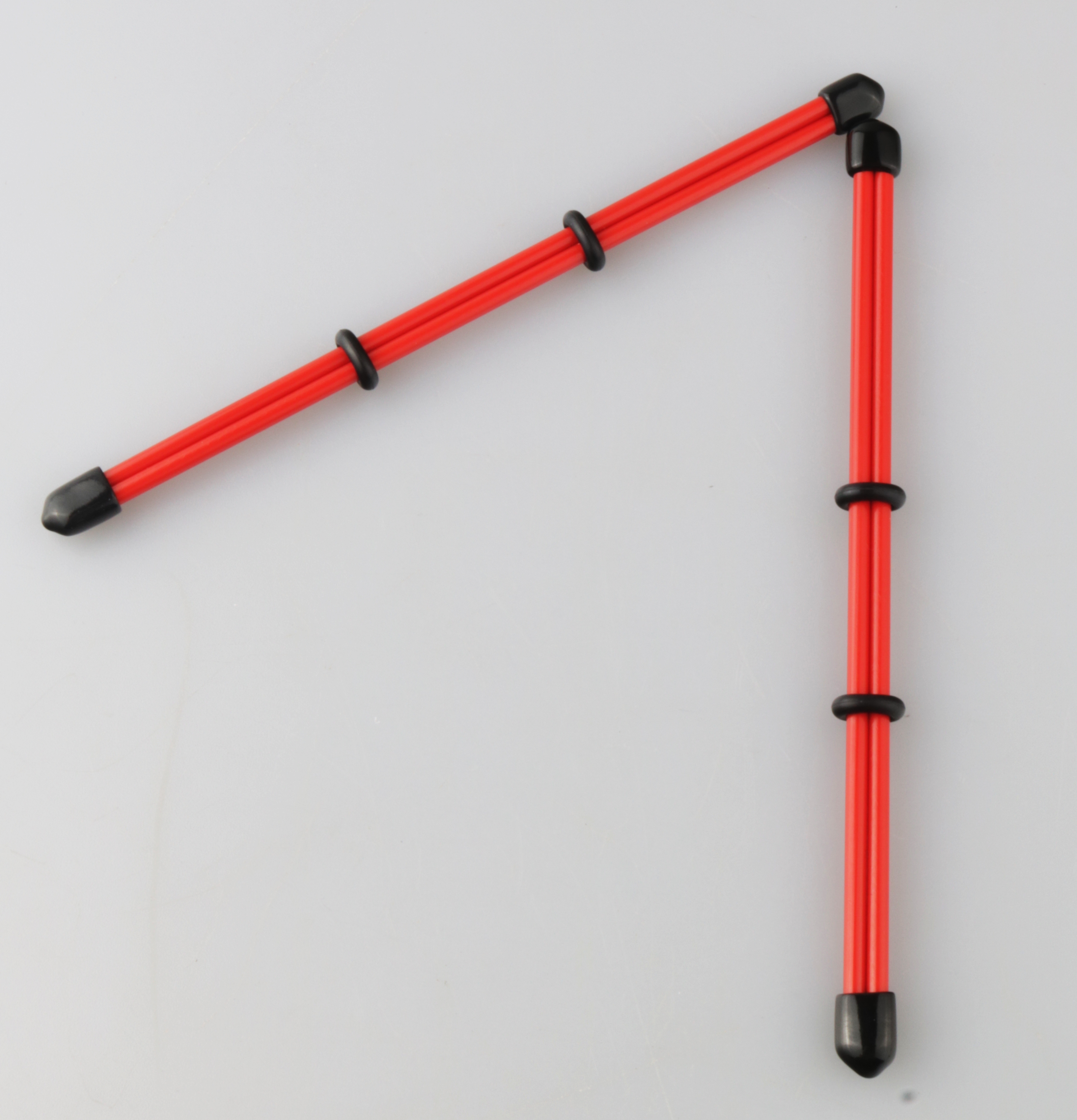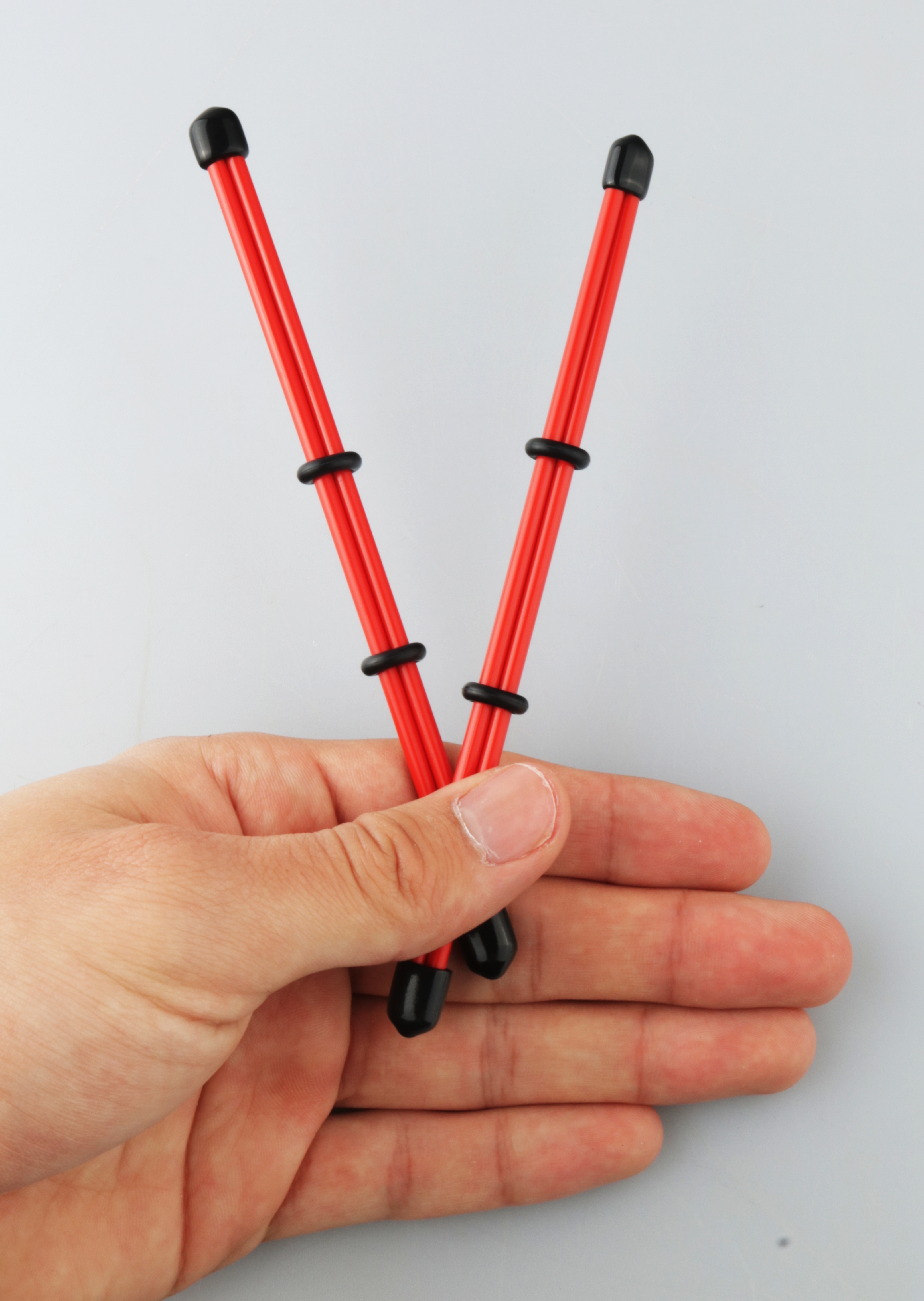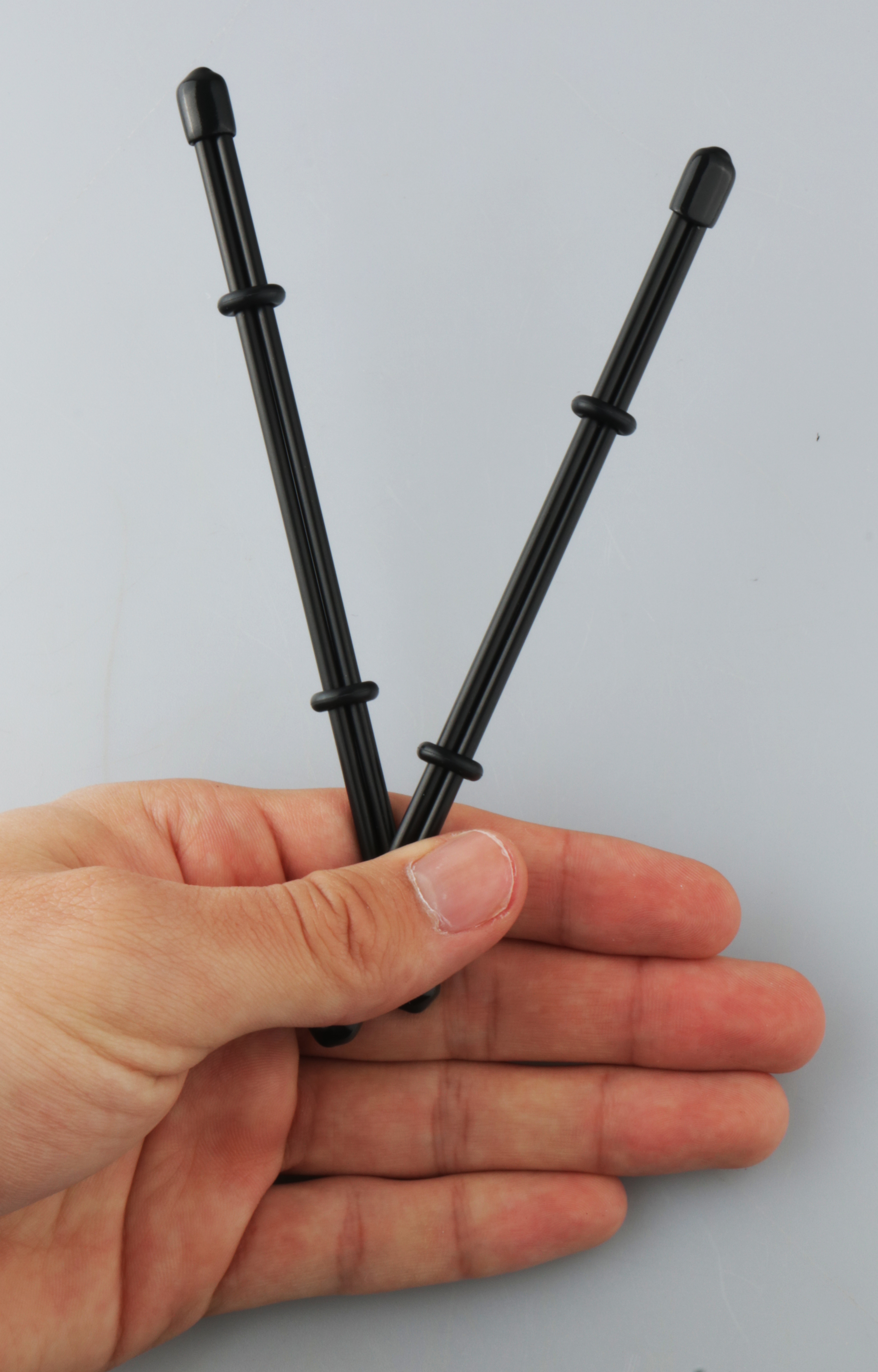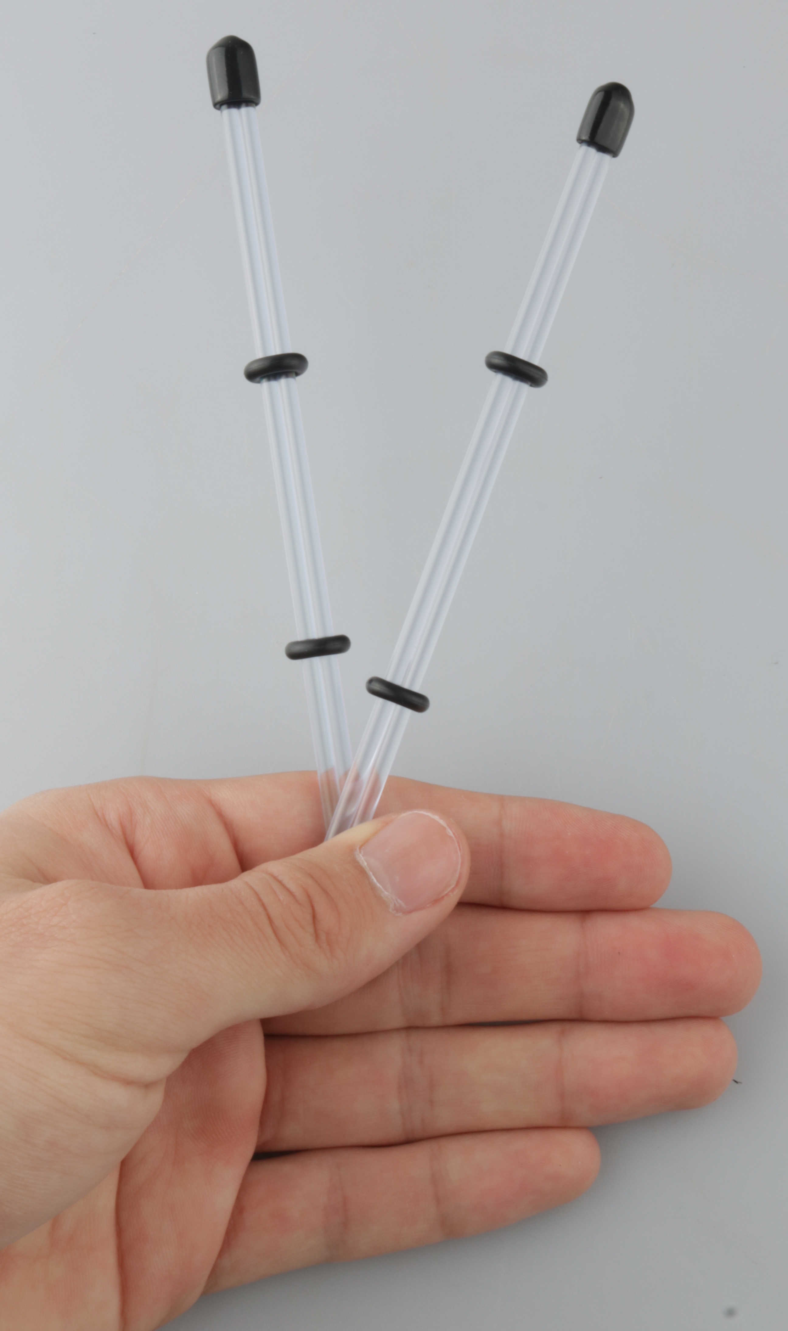 Mit Gummiendkappen und Gummiringen,